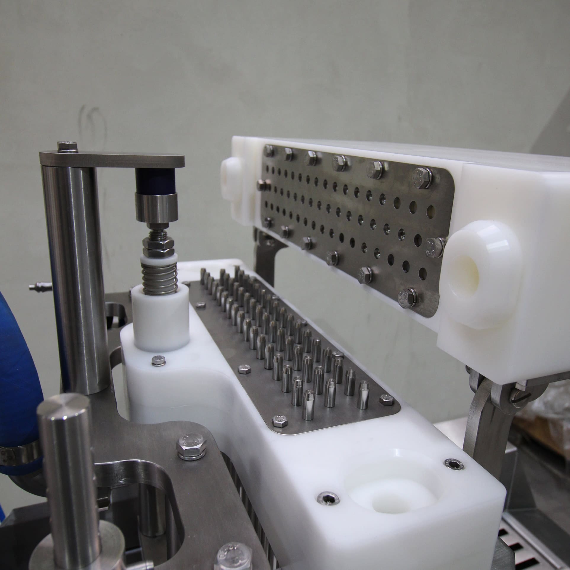 As injetoras podem ser equipadas de vários tipos de agulhas na medida de 4, 3, 2,5 ou mesmo 1,9 mm para tender a todos os tipos de produtos e injeção.